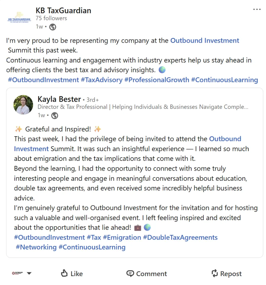 Join us on October 17th in Cape Town for the Outbound Investment Summit, an exclusive gathering designed for professionals across various industries, including finance, immigration, wealth management, consulting, legal, real estate, and more. This summit offers a unique opportunity to: