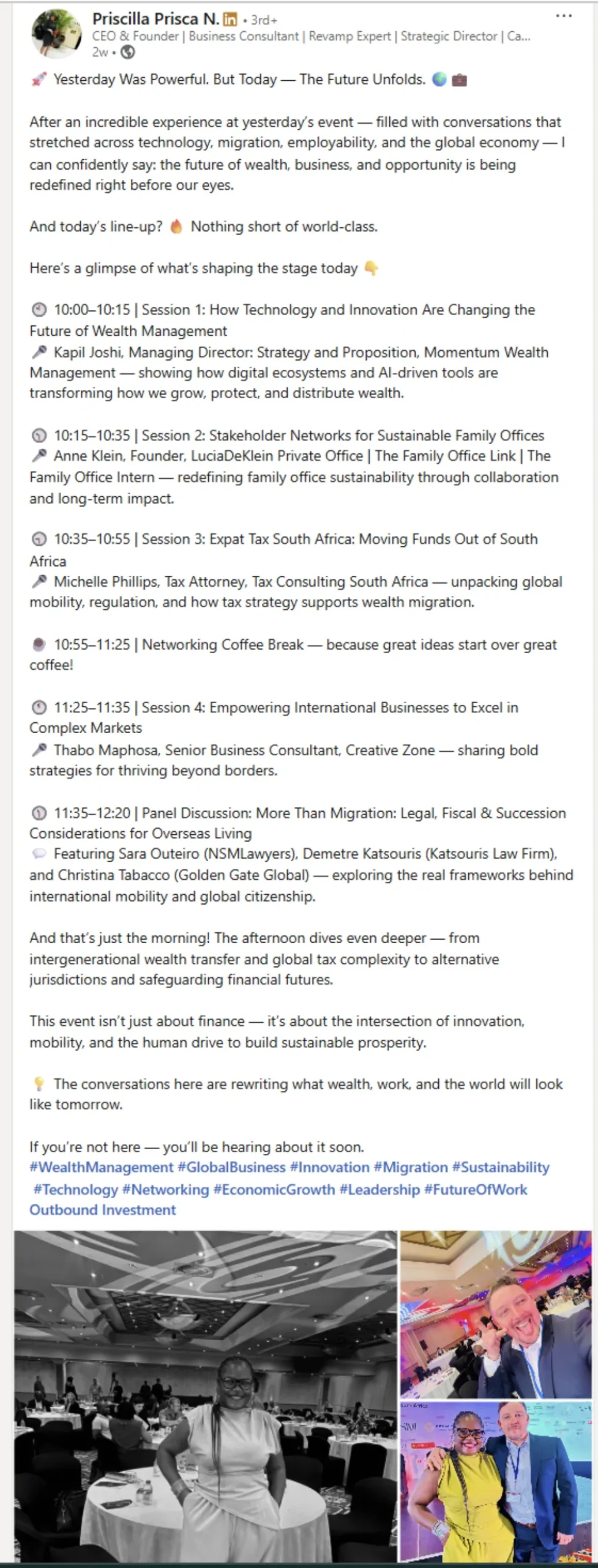 Tap into an exclusive community of global stakeholders, institutional investors, and forward-thinking entrepreneurs driving change in international markets.